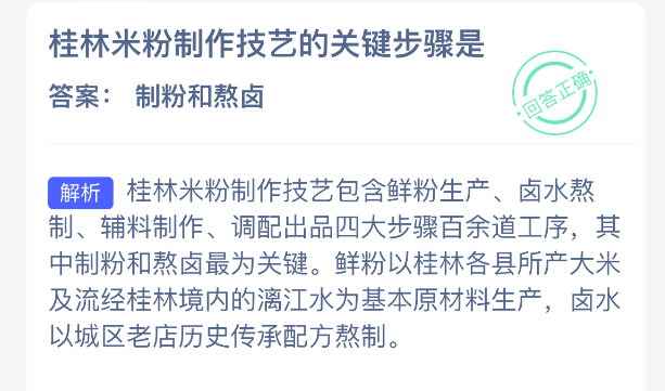 桂林米粉制作技艺的关键步骤是?【蚂蚁新村每日一题】2026年3月15日题目已发布!坚持答题,积累木兰币,即可加速小镇建设。答对本题,立即可享“产速+3/时”的加速奖励!今天正确答案是【制粉和熬卤】。桂林米粉制作技艺包含鲜粉生产、卤水熬制、辅料制作、调配出品四大步骤百余道工序,其中制粉和熬卤最为关键。