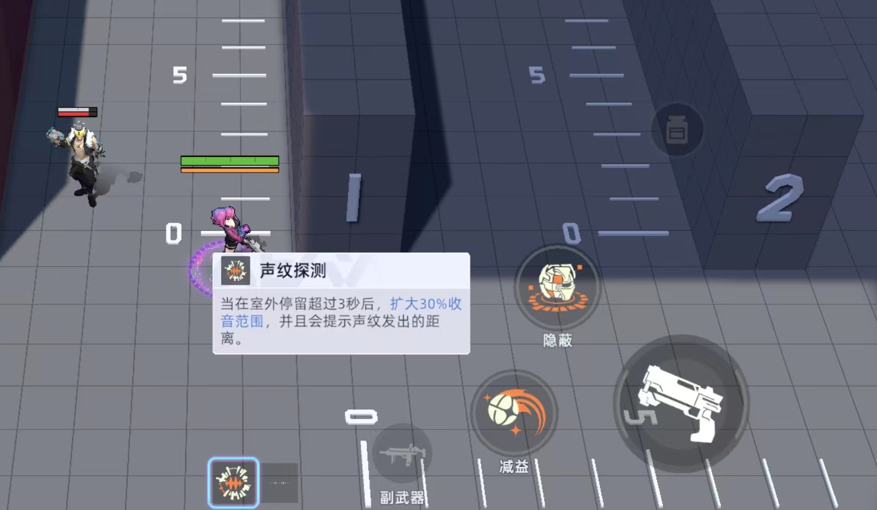 可能很多新手玩家刚刚接触游戏,不了解声纹在这款游戏实战中的重要作用。因为游戏视野是有限的,再加上还有草丛等干扰,所以并不能发现屏幕中的所有敌人和情况。但是可以通过听声音或者是看声纹这样的方法先于视野也知道敌人的位置以及各种危险。例如当附近有敌人时,就可以很明显的听见对手的脚步声,再加上声纹可以显示距离,这样就能预判敌方具体的位置以及是接近还是远离,大大加强了自身的战术主动性。主动技能炫目魔方,扔出一个魔方,命中目标后剥夺对方视觉,持续3.5秒。并产生一个半径400的区域,敌方在这个区域中时会降低视野和移动速度。