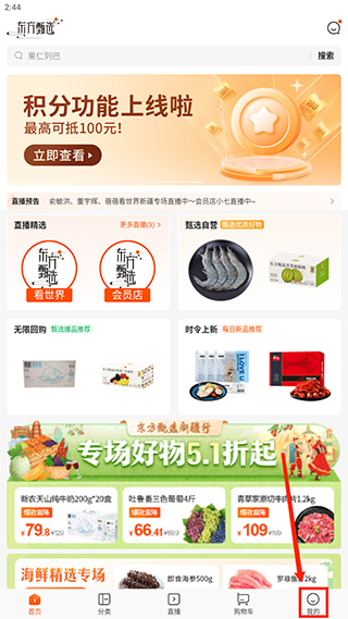 1、打开东方甄选,在首页找到【我的】,点击打开。