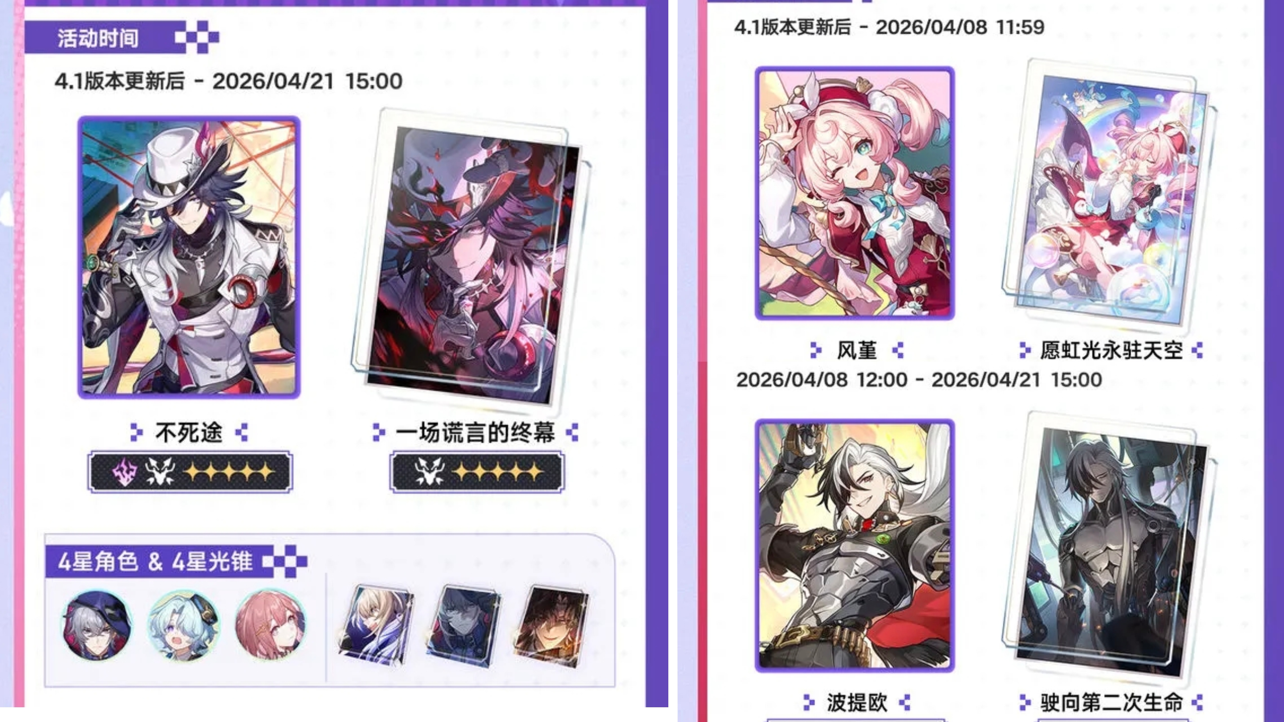 其中“不死途”是持续整个版本,风堇、波提欧则是分别上下半复刻。