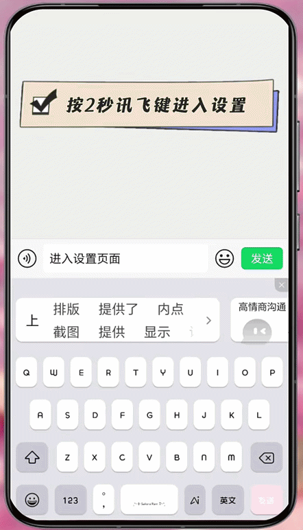 1、按两秒讯飞键,一键直达设置页面,无需层层查找,快速调整输入法各项参数