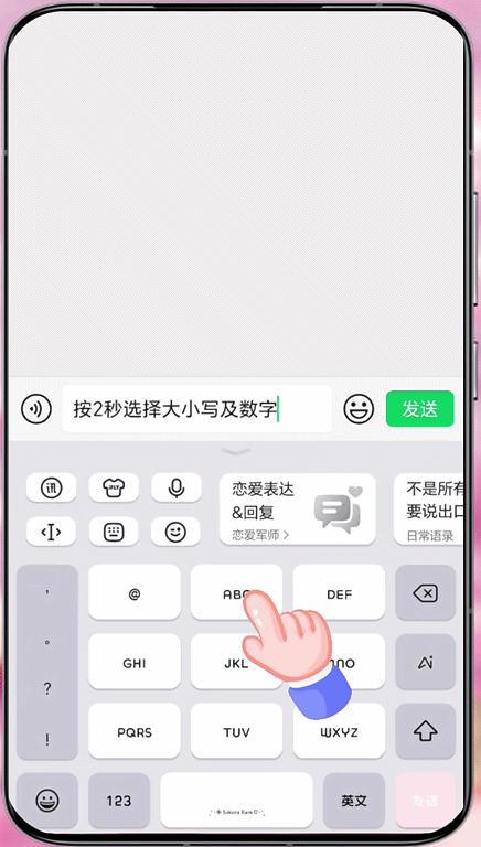 5、按两秒字母键,快速切换大小写及数字模式,输入英文、数字时不用反复切换键盘,高效又省心