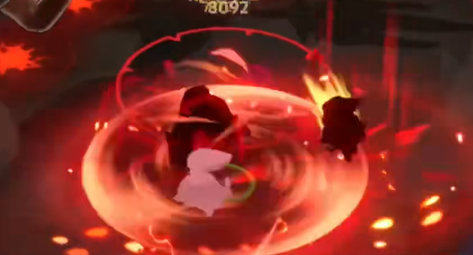 绝招「辣味强化」是甜辣酱饼干整套打法的核心。开启之后会消耗自己的生命值,进入强化状态,这段时间内伤害会提升。强化状态结束的时候,会根据「甜辣斩」命中敌人的次数来回复生命值。所以绝招开了之后,不能站着不动,要尽量多打普通攻击,命中次数越多,最后回血就越多。如果打的时候偷懒,强化结束之后血量可能会很难看。