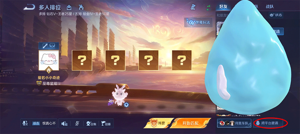 6、支持排位、匹配任意模式进行跨区开黑
