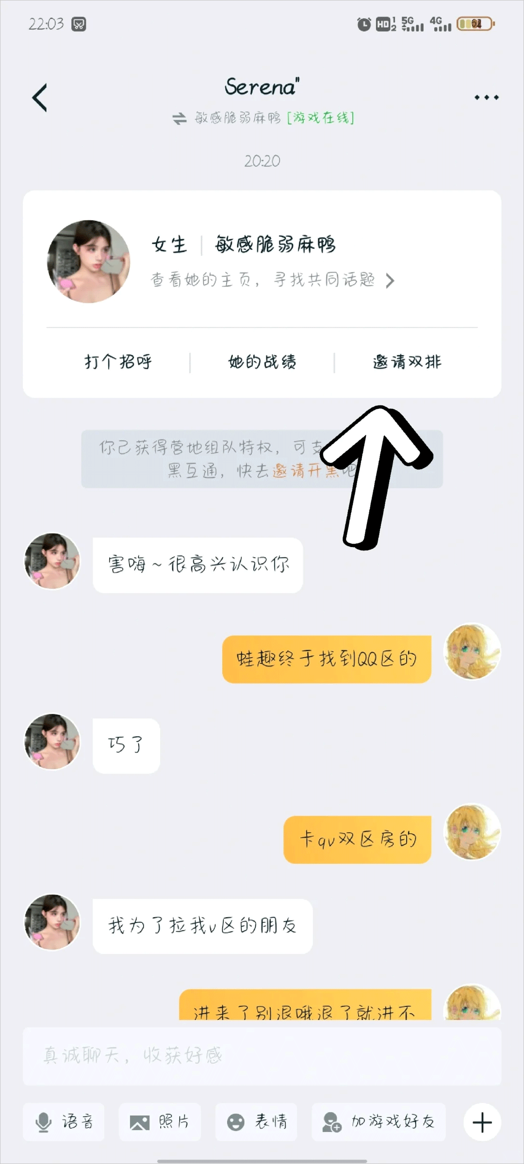 或者直接点击消息框中的“邀请双排”也可以经常操作