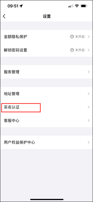 3、来到设置界面,点击页面上方的“实名认证”选项;