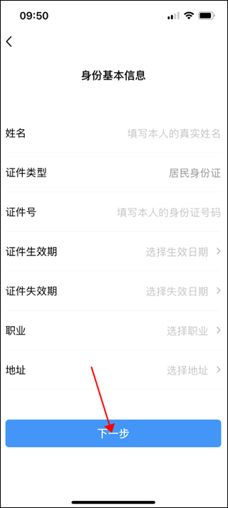 8、同意相关用户协议之后来到个人信息填写页面,完成身份基本信息填写后点击“下一步”输入手机验证码,并设置好支付密码即可完成实名认证修改。