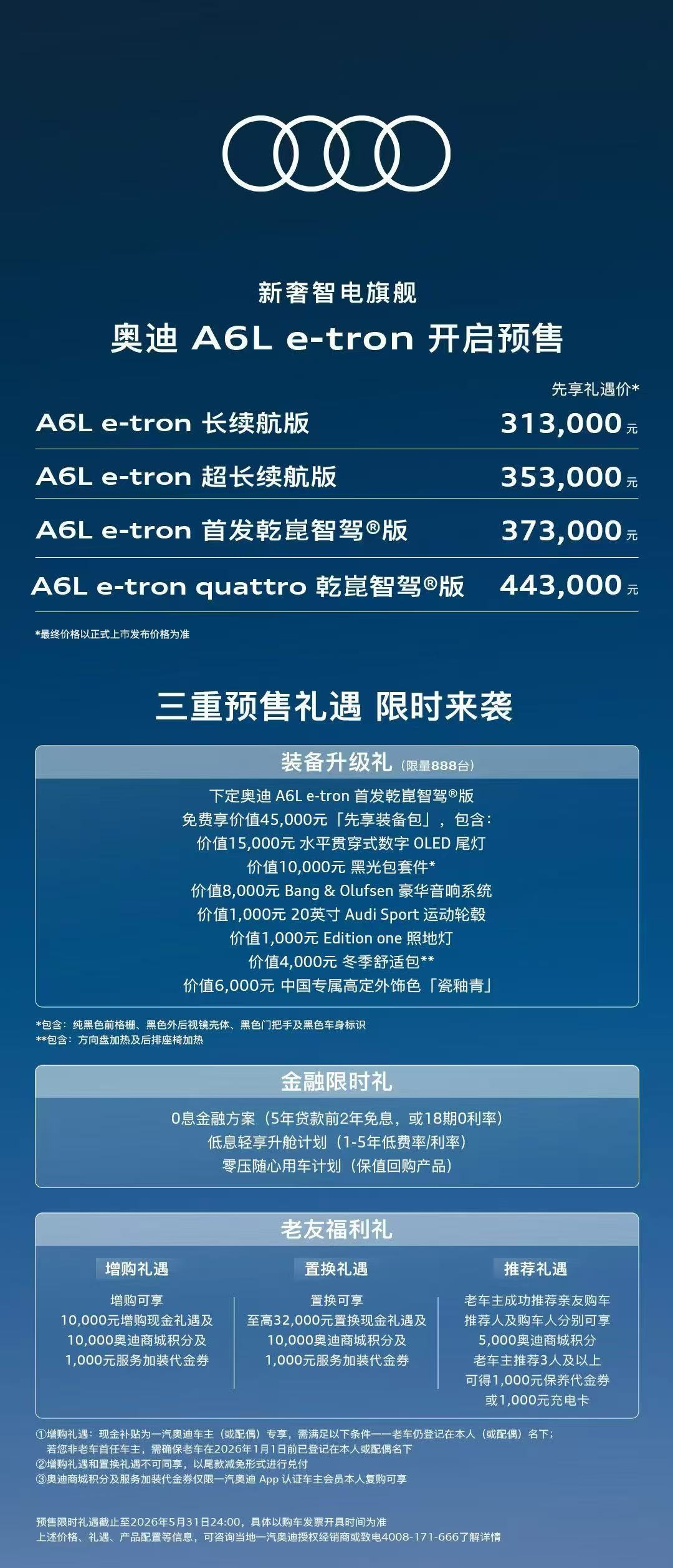 DoNews3月25日消息,全新奥迪 A6L 已上市。新车共推出 4 款车型,官方指导价为 32.29-43.59 万元,并同步推出多项购车权益。