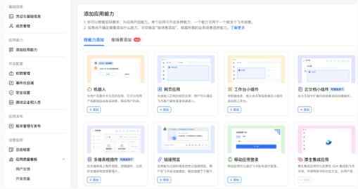 在应用详情页的「添加应用能力」区域,找到「机器人」卡片,点击「添加」按钮。