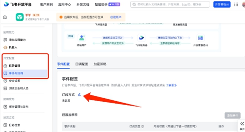 3、在「订阅方式」中选择「将事件发送至开发者服务器」