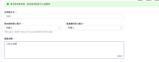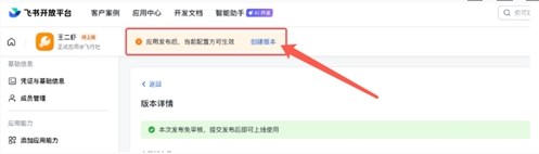 4、发布版本:创建成功后,点击版本右侧的「发布」按钮。