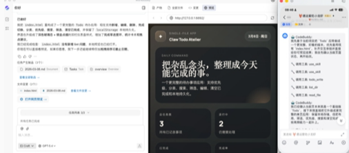 3、发送任务:直接发送您的需求,比如「帮我写一个待办事项应用」。WorkBuddy会在电脑上自动执行任务,并将结果返回给您。
