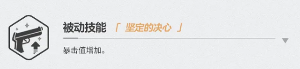 她有四个技能,每个都有自己的用途。被动技能叫「坚定的决心」,效果是提升暴击值。这个技能乍看之下好像和辅助没什么关系,但在实际使用中,暴击值的提升对输出节奏是有帮助的。伊落玛丽本身的攻击不是重点,但这个被动不能忽视。