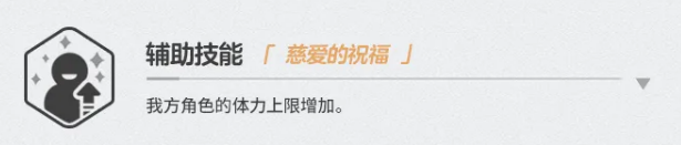 辅助技能「慈爱的祝福」,给我方角色增加体力上限。这个效果直接影响队伍的续战能力,体力上限高了,被打也不那么容易就倒。在打持久战的关卡里,这个技能的价值会被放大很多。队伍里有她,扛伤害的压力会小不少。