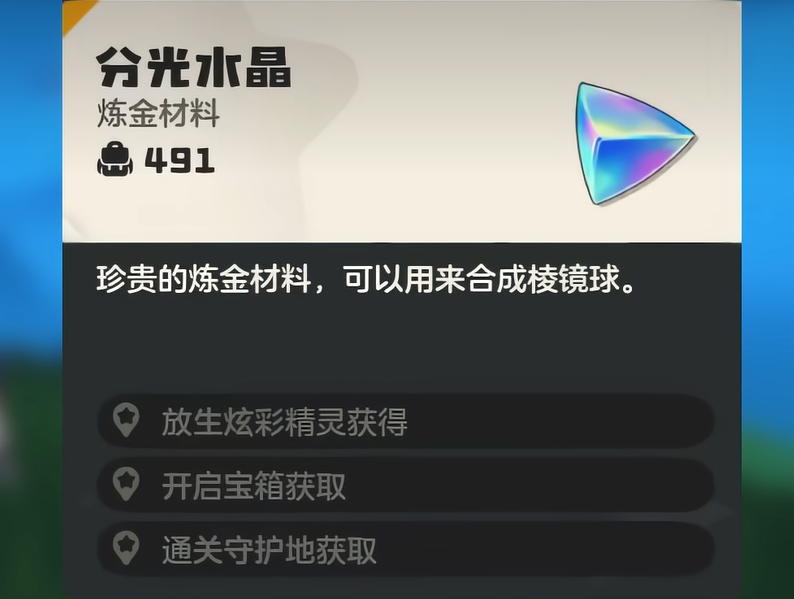 棱镜球分好几种,首先是赛季棱镜球和常驻棱镜球,直接氪金买的话一个要160块,价格确实不便宜。赛季棱镜球抓出来的炫彩颜色,是S1限定的黑白配色,叫做暗夜时光,而普通棱镜球就是随机颜色。如果买了S1通行证,而且打满了全部的通行证奖励,会获得三个赛季棱镜球,这算是目前性价比比较高的获取方法了。不花钱的话,可以通过刷副本来获得分光水晶,攒够1600个,就可以兑换一个普通棱镜球。