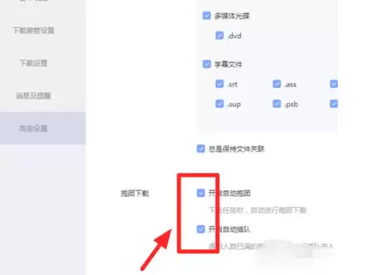 现在来到关键环节。在“高级设置”页面里,滚动浏览,找到关于“抱团下载”的相关选项。通常,你会看到“开启自动抱团”和“开启自动插队”两个复选框。把它们都勾选上——这就相当于给下载任务加入了“团队协作”和“智能调度”的双重buff。