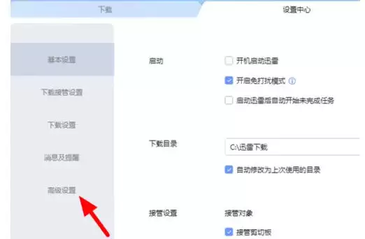 进入“设置中心”后,你会发现选项不少。别着急,我们这次的目标很明确:在页面左侧或选项卡中,找到“高级设置”并点击它。这里藏着更多提升下载效率的“高级玩法”。