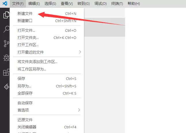 扩展安装好后,就可以开始写代码了。点击顶部菜单栏的“文件”,选择“新建文件”,或者直接用快捷键Ctrl+N(Windows/Linux)或Cmd+N(Mac)更快捷。