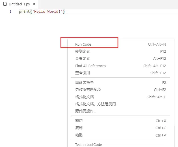 代码写好后,怎么运行呢?方法很简单:在文件编辑区的任意位置点击鼠标右键,在弹出的上下文菜单中找到并选择“Run Code”。稍等片刻,你就能在编辑器底部打开的“输出”面板中,看到代码的执行结果了。