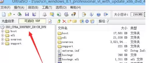 ISO文件成功打开后,注意看软件界面上方的“光盘目录”区域。这里会清晰地列出该ISO镜像内部包含的所有文件和文件夹,就像你打开了光盘一样。
