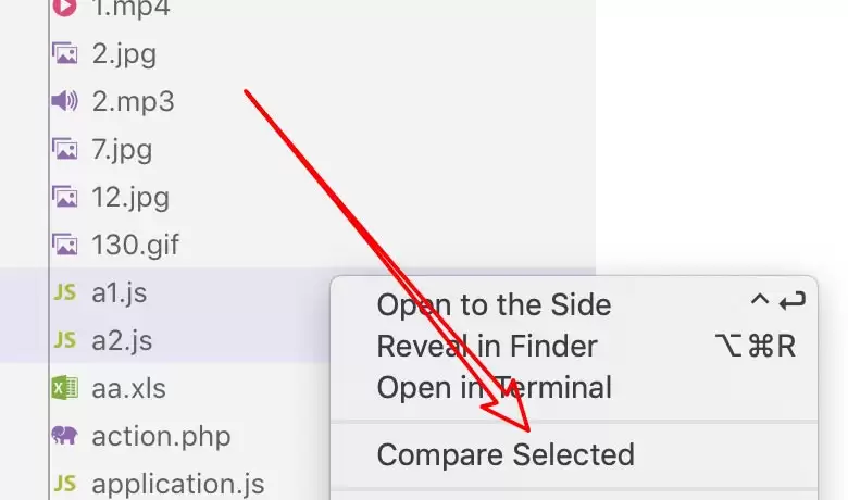 第一步很简单:在编辑器的文件资源管理器里,先用鼠标左键点击选中第一个你想比较的文件。