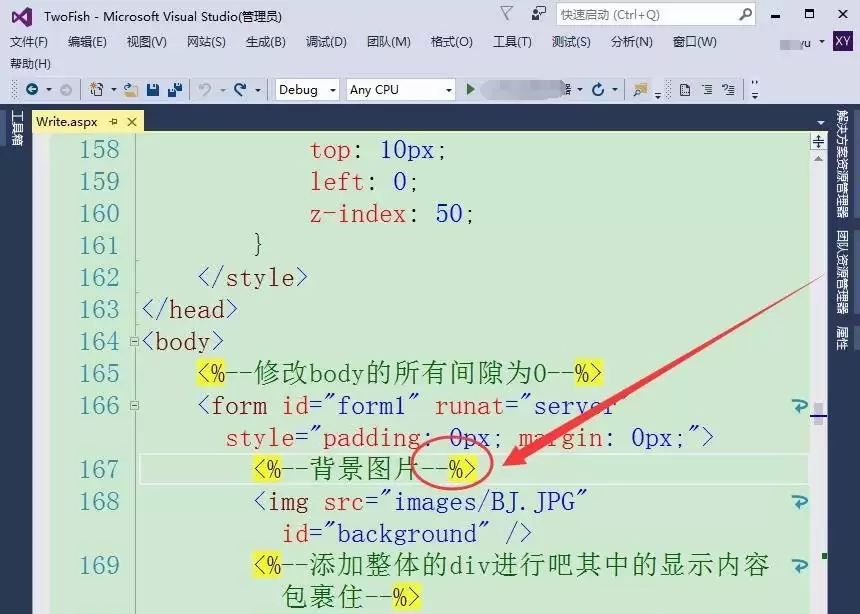 1. 首先,在你打算添加注释的那行代码前方,输入 <%-- 这个起始符号。