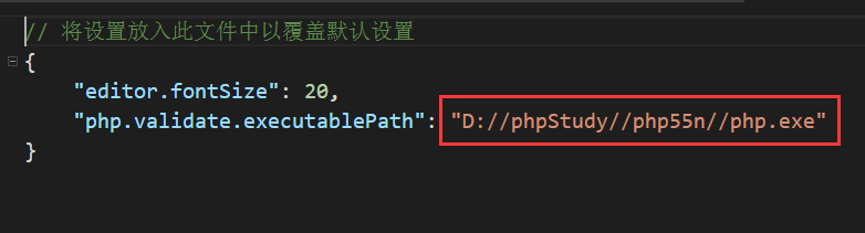 最后,也是最关键的一步,把这项后面的路径值,替换成你自己电脑上 PHP 可执行文件的实际地址。这样一来,编辑器就知道该去哪里调用 PHP 了。