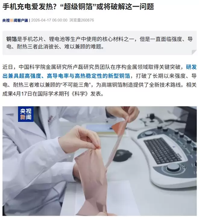 您的位置:首页 >手机充电爱发热?我国研发“超级铜箔”或将破解这一问题