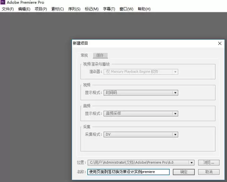 首先,打开Premiere,创建一个新项目和新序列。这里给你个小建议:序列命名可以清晰一些,比如咱们就命名为“使用页面剥落切换效果设计实例premiere”。好处是,以后项目文件多了,你一眼就能找到它。