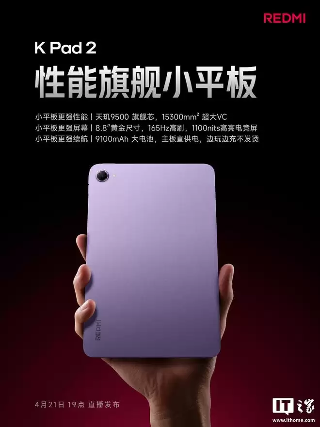 4月21日晚7点,这就是小米REDMI K Pad 2小平板的发布时间。消息一出,关注度立刻拉满。毕竟,这款新品确认搭载的天玑9500正代旗舰芯,以及它对五大枪战手游原生165fps的支持,已经摆明了它的硬核定位。