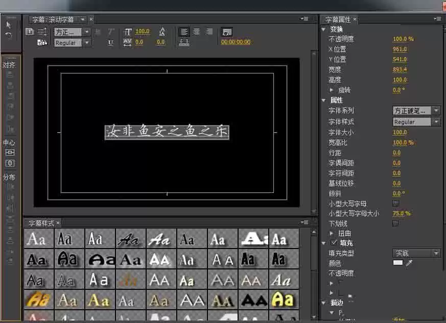 还有一种动态效果叫游动字幕,也就是常说的跑马灯。适用于新闻标题或者实时信息。创建路径是:“字幕”——“新建字幕”——“默认游动字幕”。
