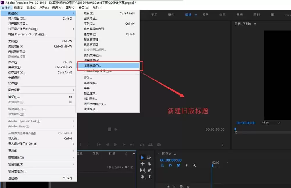 接下来,就是制作字幕本身了。将视线移到顶部菜单栏,点击“文件”,在下拉菜单中选择“新建”,紧接着在右侧弹出的二级菜单里,找到并点击“旧版标题”。这个功能虽然名为“旧版”,但它提供了非常直接和稳定的字幕创建环境。