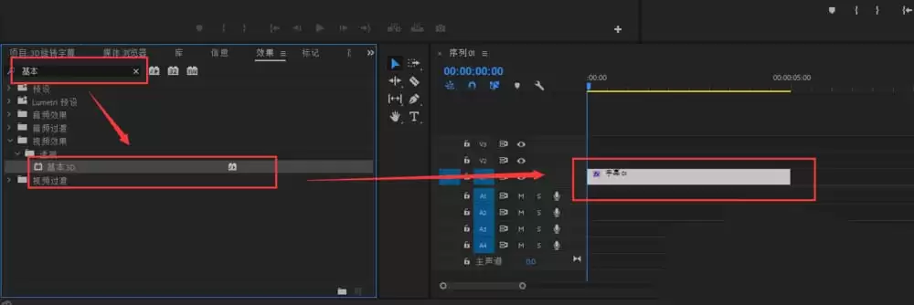 重头戏来了——添加3D旋转动画。在软件界面右侧,找到并打开“效果”面板。在顶部的搜索框内,直接输入“基本3D”,这个内置的视频效果就会显示出来。然后,将其拖拽到时间轴里你刚刚放入的字幕剪辑上。