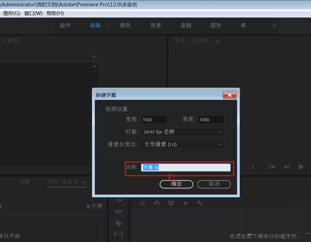 点击之后,会弹出一个设置窗口。这里需要匹配你的视频尺寸,比如常见的1920x1080。然后,给这个字幕文件起个容易辨识的名字,点击“确定”。