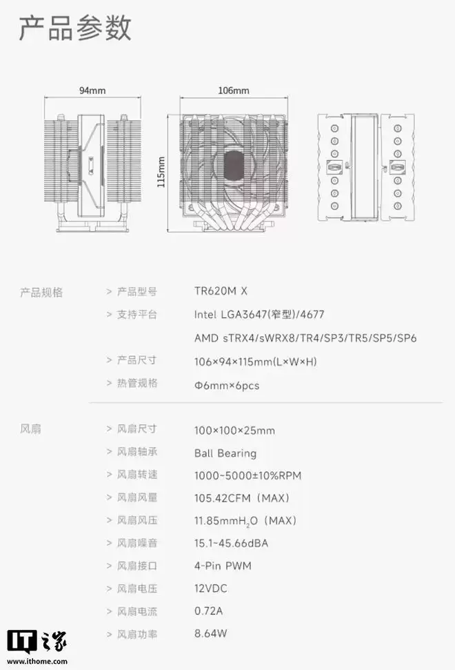 兼容性方面,它准备得相当充分。除了主流的消费级平台,它还兼容英特尔LGA3647(窄型)/4677以及AMD的sTRX4/sWRX8/TR4/SP3/TR5/SP5/SP6等平台,这意味着从高性能工作站到顶级线程撕裂者平台,它都有可能覆盖。