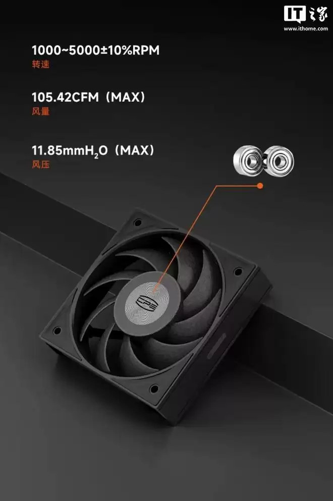 先看核心规格。这款散热器的三围是115x106x94mm,属于比较紧凑的双塔结构。风扇方面,它内置了日系NMB双滚珠轴承,耐用性一直是这类轴承的强项。标配风扇的最大转速能达到5000±10% RPM,最大风量和静压分别达到了105.42 CFM和11.85mmH2O,这个数据对于应对高功耗处理器产生的热量,算是有了不错的基础。