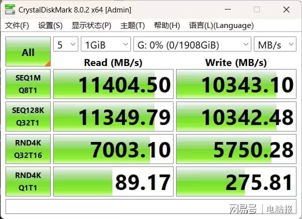 标称速度:11000MB/s(读)、10000MB/s(写)