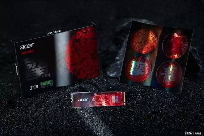 宏碁ACER N8000延续了暗影骑士系列的家族式设计风格,包装采用黑红撞色搭配,正面清晰印着品牌LOGO、产品型号,背面则简洁标注了读写速度、接口协议等核心卖点。SSD本体正面的贴纸上印有暗影骑士,左边是ACER Logo,右边是产品系列和型号,图案还经过了镭射反光处理,颜值不错。SSD正面的贴纸实际上是石墨烯散热贴,拥有很高的导热系数,能快速导出核心热量。