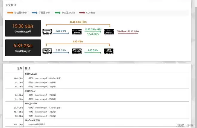 WIN11系统加入了微软的DirectStorage技术,允许GPU计算着色器直接访问NVMe SSD,使游戏数据能直接从硬盘传输到显卡显存中,大幅降低游戏加载时间。我们也在3DMARK中对宏碁ACER N8000进行了DirectStorage功能的测试,可以看到,在启用DirectStorage技术后,SSD到显存的带宽得到了大幅提升。在未启用DirectStorage功能的情况下,从SSD加载存储至显存时,带宽为6.83GB/s,而启用DirectStorage功能后,带宽提升至19.08GB/s,在支持DirectStorage技术的游戏中,ACER N8000可以带来秒开的游戏体验。