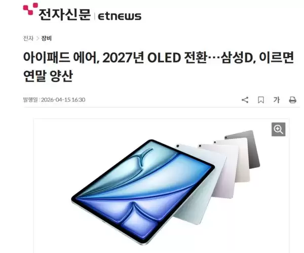 一则来自韩国供应链的消息,揭示了苹果平板电脑产品线未来几年的关键动向。根据报道,苹果计划在未来的iPad Air机型上采用OLED显示面板,而三星显示预计将担纲这些屏幕的主要供应商。如果一切按计划推进,首款搭载OLED屏幕的iPad Air有望在2027年与消费者见面。