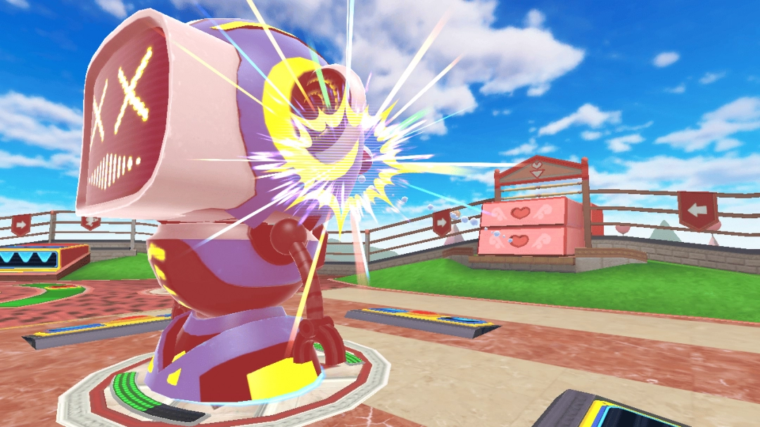 这次新增的“花环之路”关卡,场景设定在一个花香四溢的空中庭院。玩法核心颇具巧思:玩家需要巧妙利用场景中飞出的抽屉,或是借助传送带发射台的力量,去击败那些依靠滑动面板移动的巨大机器人。