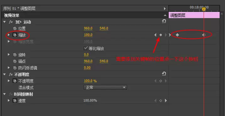 第三步:关键帧动画,让静态效果“活”起来。 选中调整图层,打开“效果控件”面板。找到“变换”效果下的“缩放”参数。把播放指示器移到转场开始的位置,点击缩放旁边的秒表图标打上第一个关键帧;再把指示器移到转场结束的位置,修改缩放值(比如从100%调到150%),自动生成第二个关键帧。这时候,一个基础的放大动画就有了。