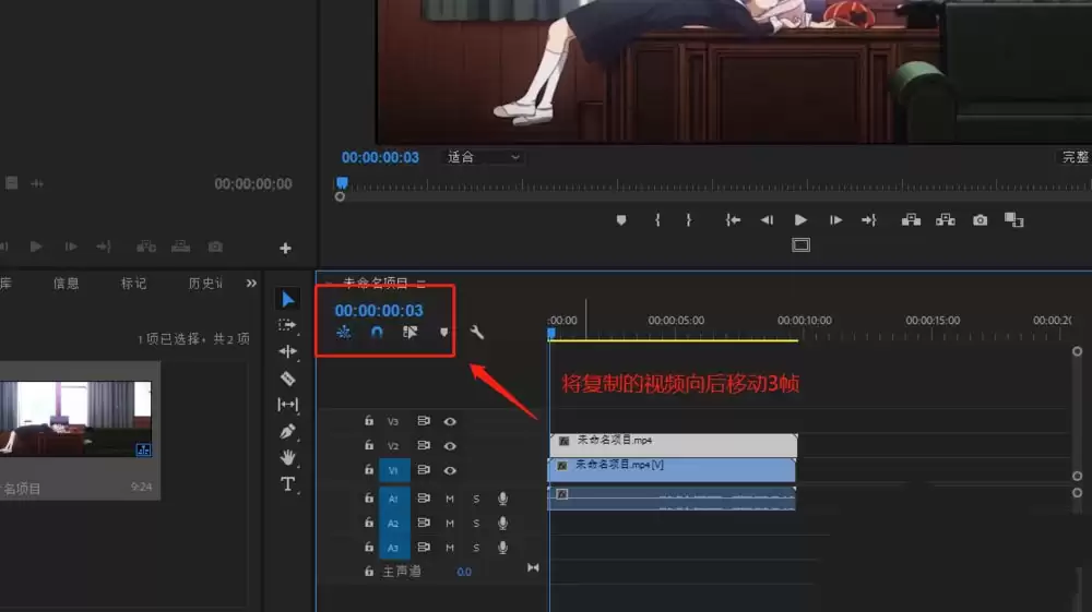 现在,我们要制造时间差了。把时间轴指针向前移动3帧。注意,是3帧,这个数值决定了幻影的延迟感,你可以根据视频节奏微调。然后,将刚刚复制出来的、位于轨道2的那段视频整体向右拖动,使其入点对齐你移动后的指针位置。这样一来,上层视频就比下层视频晚了3帧开始播放。