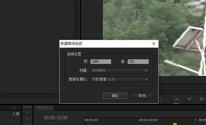 创建黑场时,软件通常会弹出一个设置窗口。这里一般不需要大动干戈,保持默认的尺寸和像素比,与你当前序列的设置一致即可。直接点击“确定”创建素材。