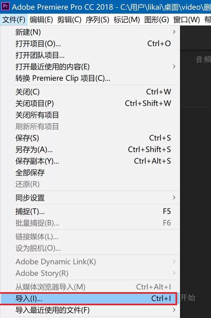 3、项目创建好后,在左上角的菜单栏点击“文件”,从弹出的下拉菜单中选择“导入”命令。这是将素材引入项目库的标准操作。