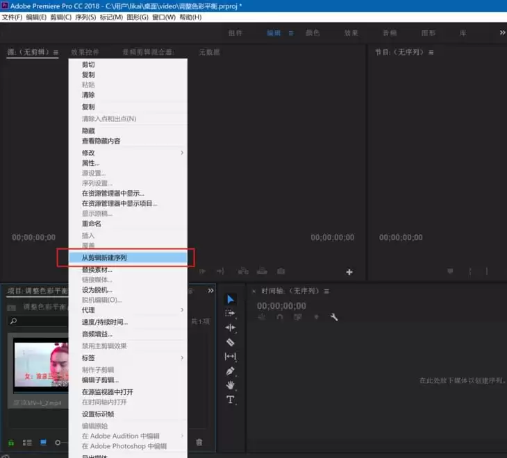 第四步,素材导入后,在项目面板中右键单击它,从弹出的菜单中选择“从剪辑新建序列”。这个操作能快速创建一个与视频属性完美匹配的时间线序列。
