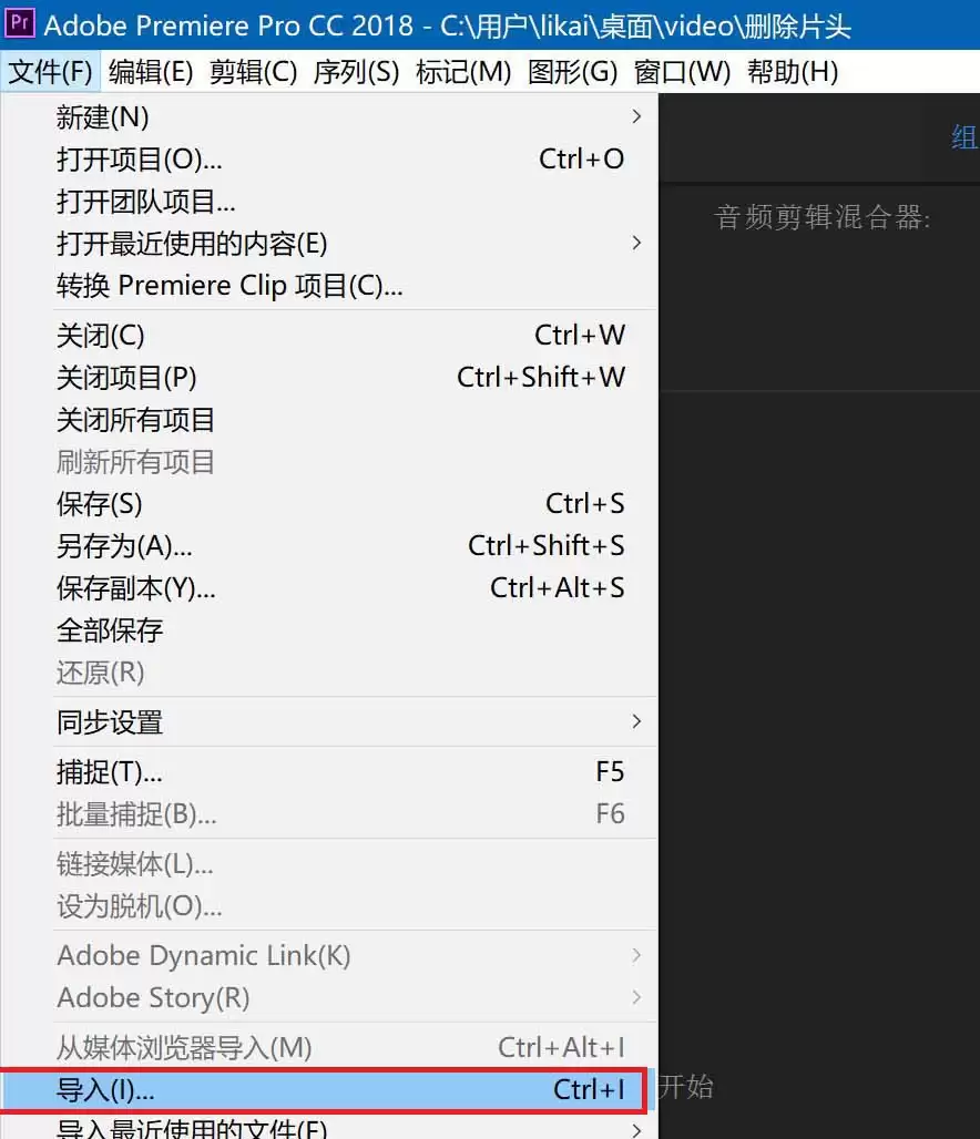 项目建好了,现在需要把素材导进来。点击左上角的“文件”菜单,在下拉列表中选择“导入”。