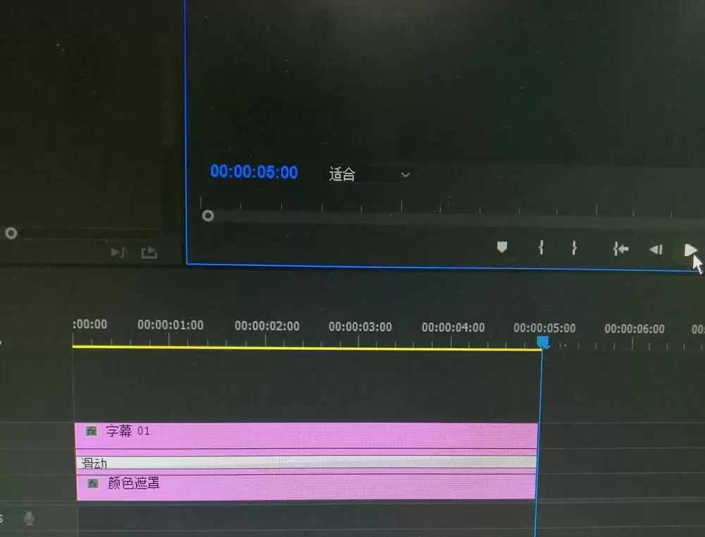 现在开始组装。按照顺序,把刚才做好的字幕、图片以及颜色遮罩,依次拖拽到时间轴轨道上。