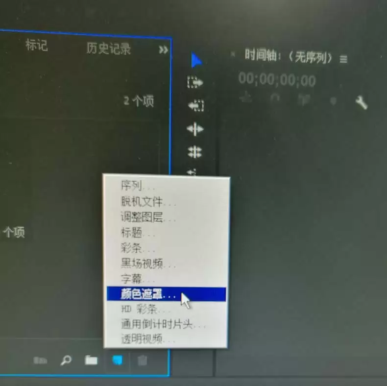 第一步,先启动Premiere新建项目,然后创建一个颜色遮罩。弹出的对话框直接点击“确定”就好,颜色可以稍后再选。