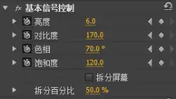 第二步,让颜色开始变化。将时间标尺移动到00:00:00:12处,再次调整“基本信号控制”的参数。Premiere会自动在此处生成新的关键帧,这就创建了从第一步到第二步的过渡动画。